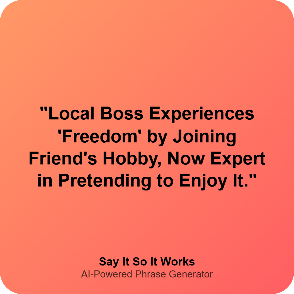 "Local Boss Experiences 'Freedom' by Joining Friend's Hobby, Now Expert in Pretending to Enjoy It."