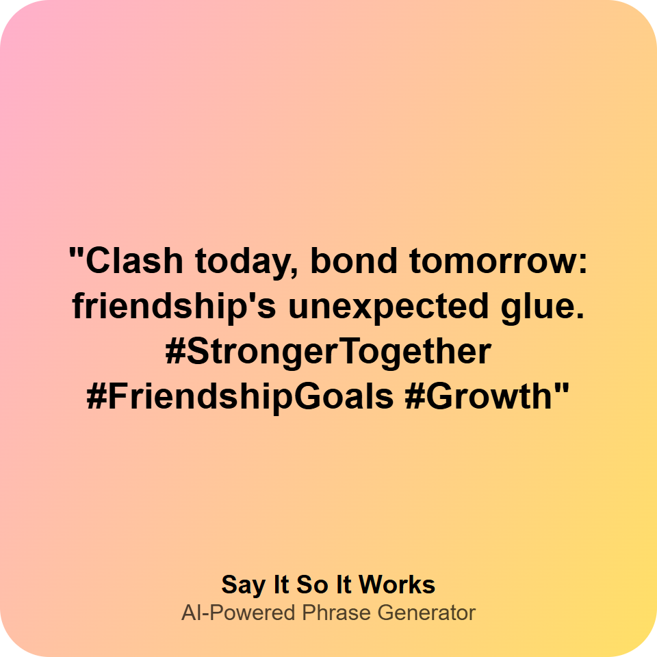 "Clash today, bond tomorrow: friendship's unexpected glue. #StrongerTogether #FriendshipGoals #Growth"