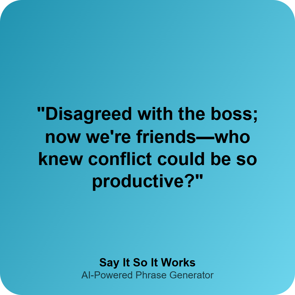 "Disagreed with the boss; now we're friends—who knew conflict could be so productive?"
