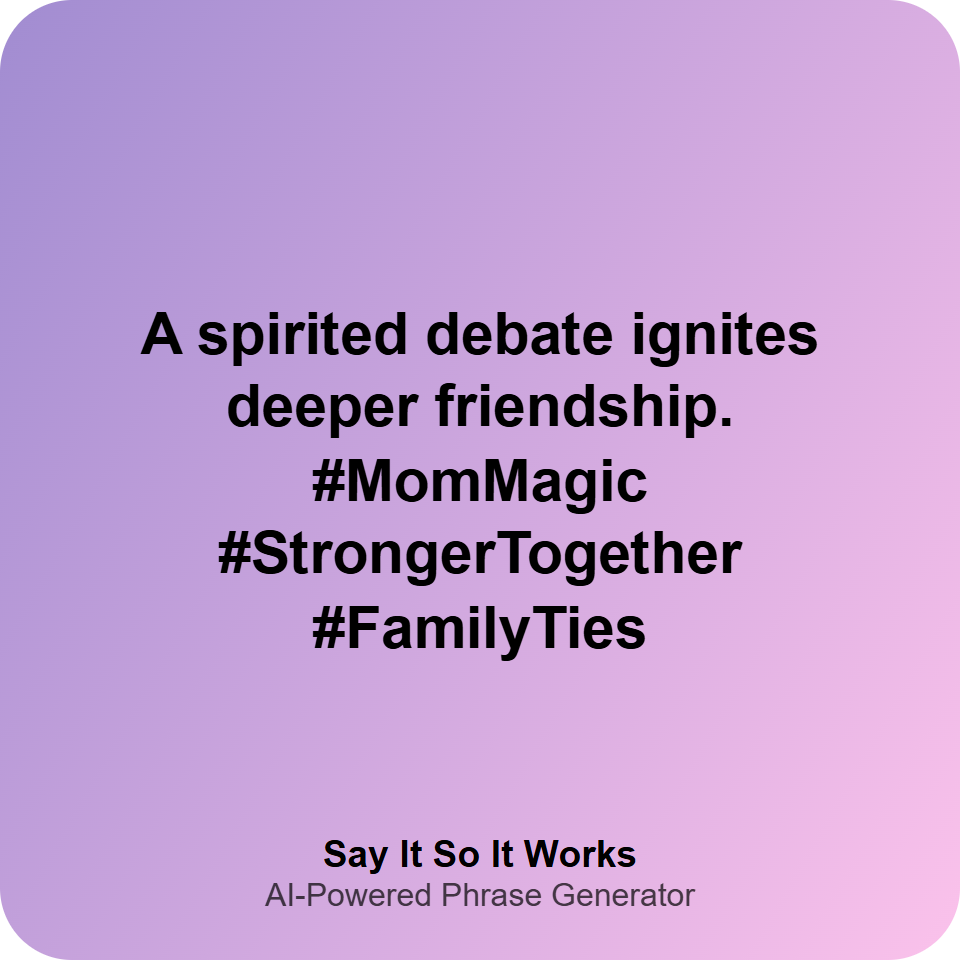 A spirited debate ignites deeper friendship. #MomMagic #StrongerTogether #FamilyTies
