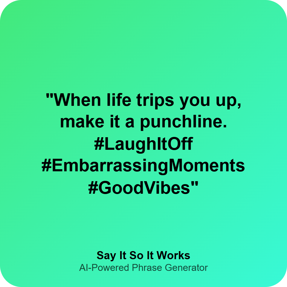"When life trips you up, make it a punchline. #LaughItOff #EmbarrassingMoments #GoodVibes"