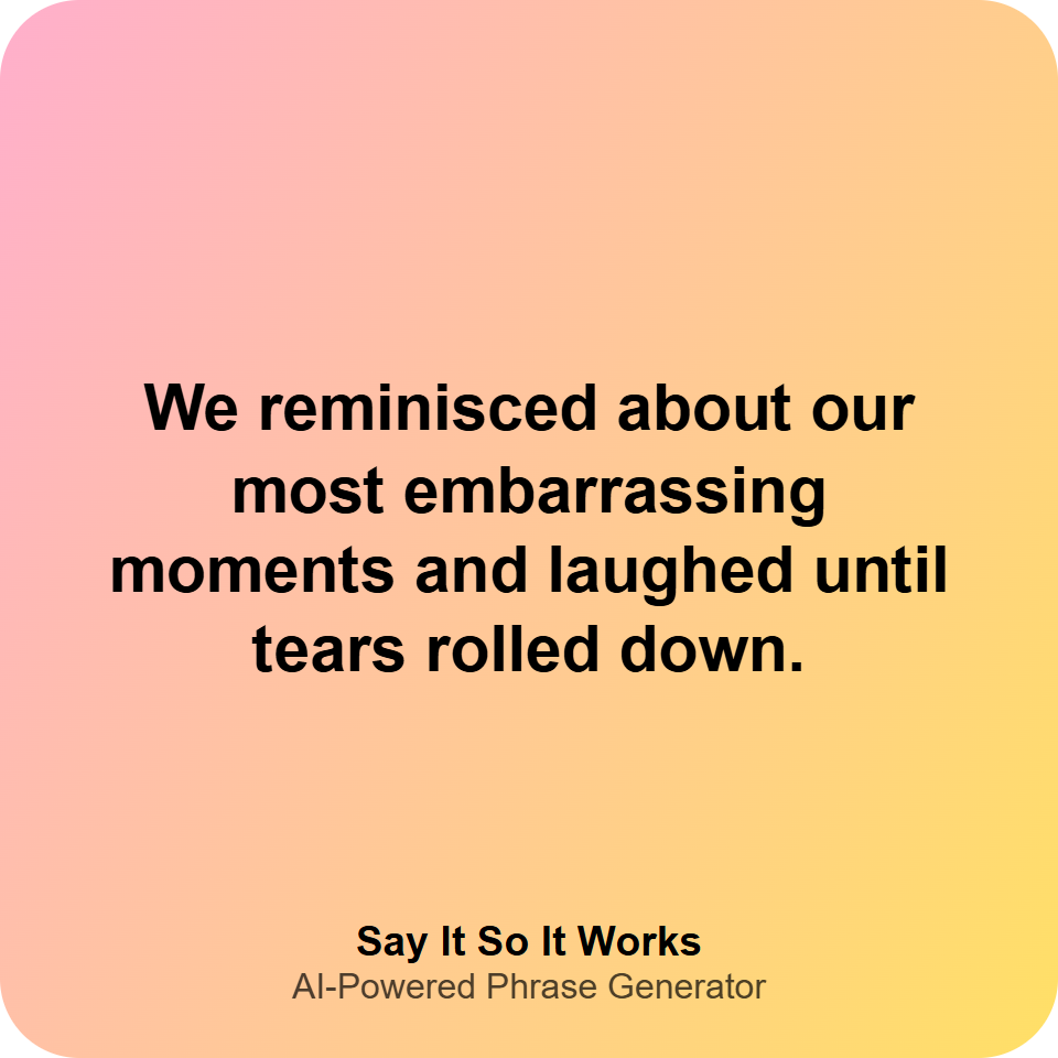 We reminisced about our most embarrassing moments and laughed until tears rolled down.