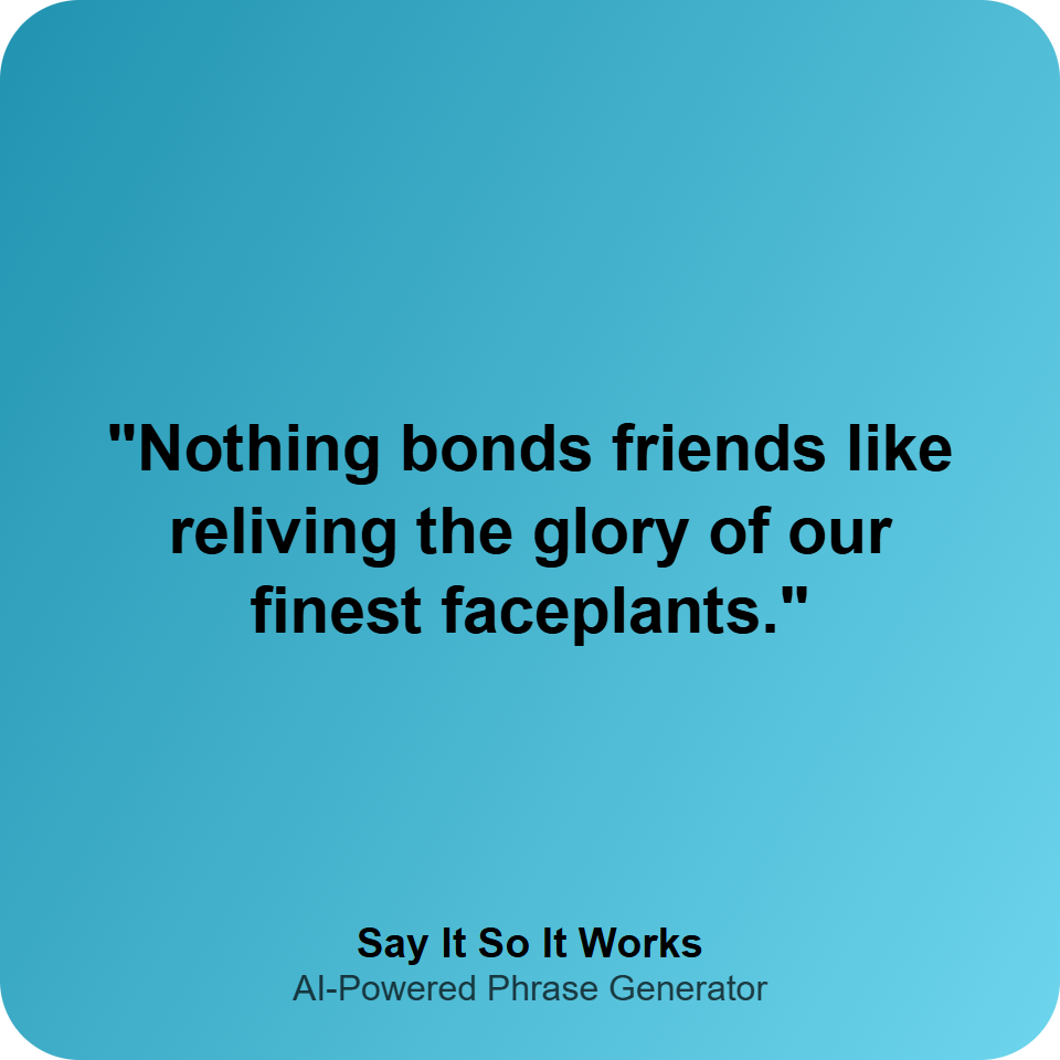 "Nothing bonds friends like reliving the glory of our finest faceplants."