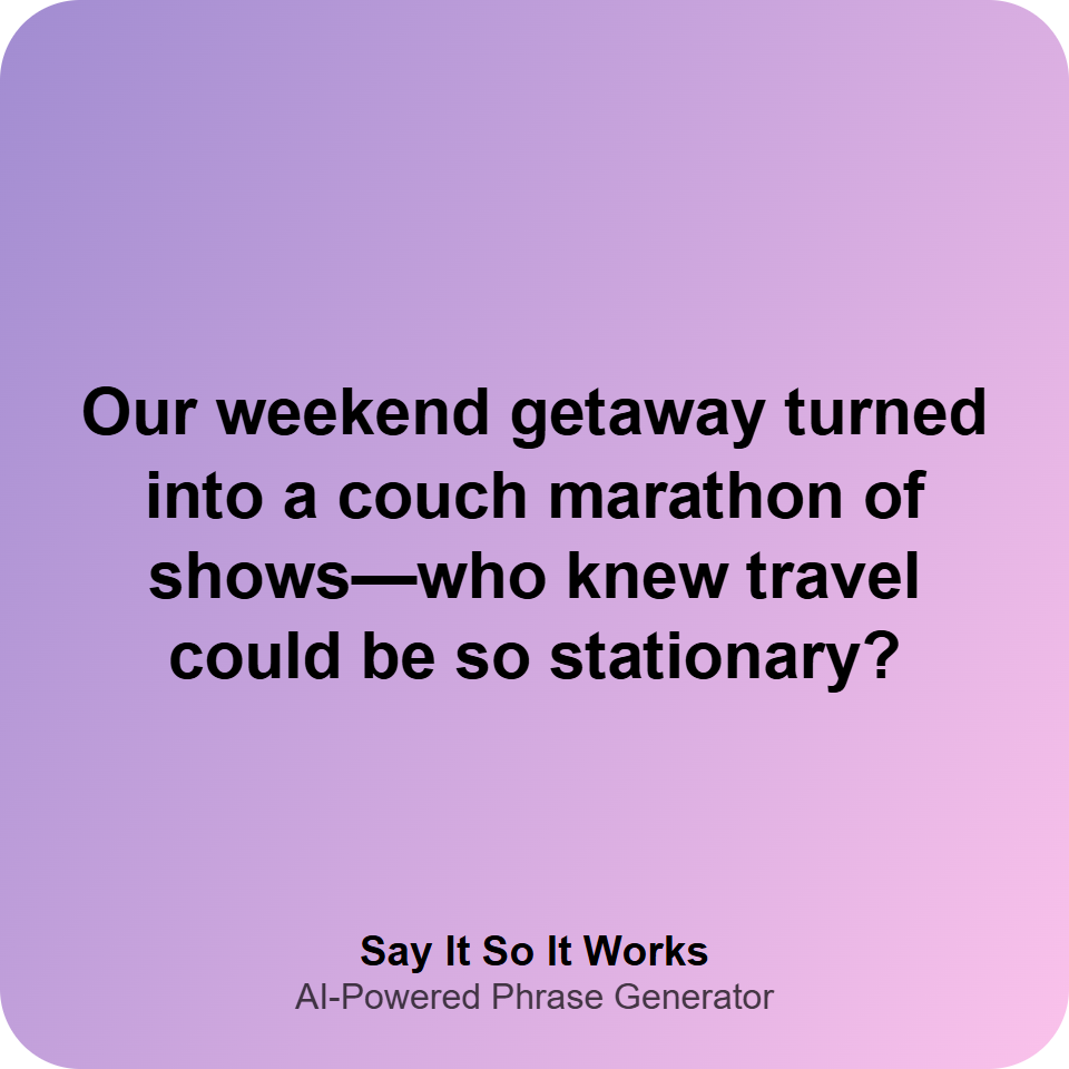 Our weekend getaway turned into a couch marathon of shows—who knew travel could be so stationary?