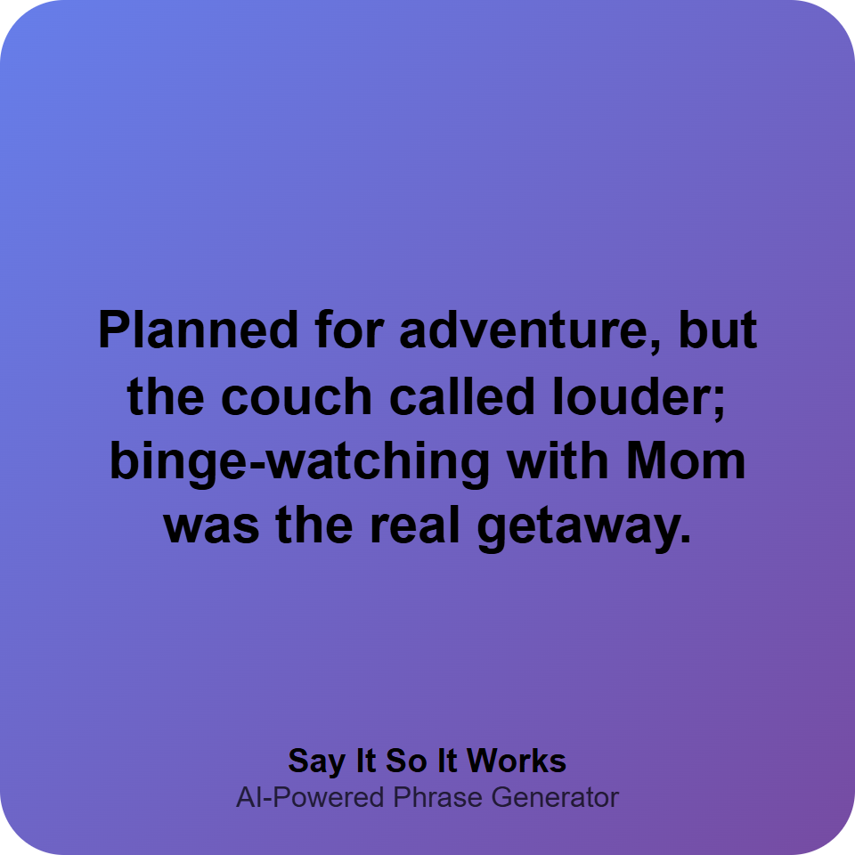 Planned for adventure, but the couch called louder; binge-watching with Mom was the real getaway.