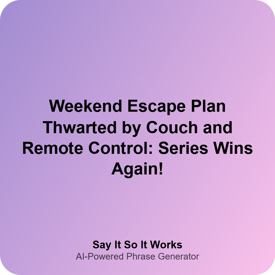 Weekend Escape Plan Thwarted by Couch and Remote Control: Series Wins Again!