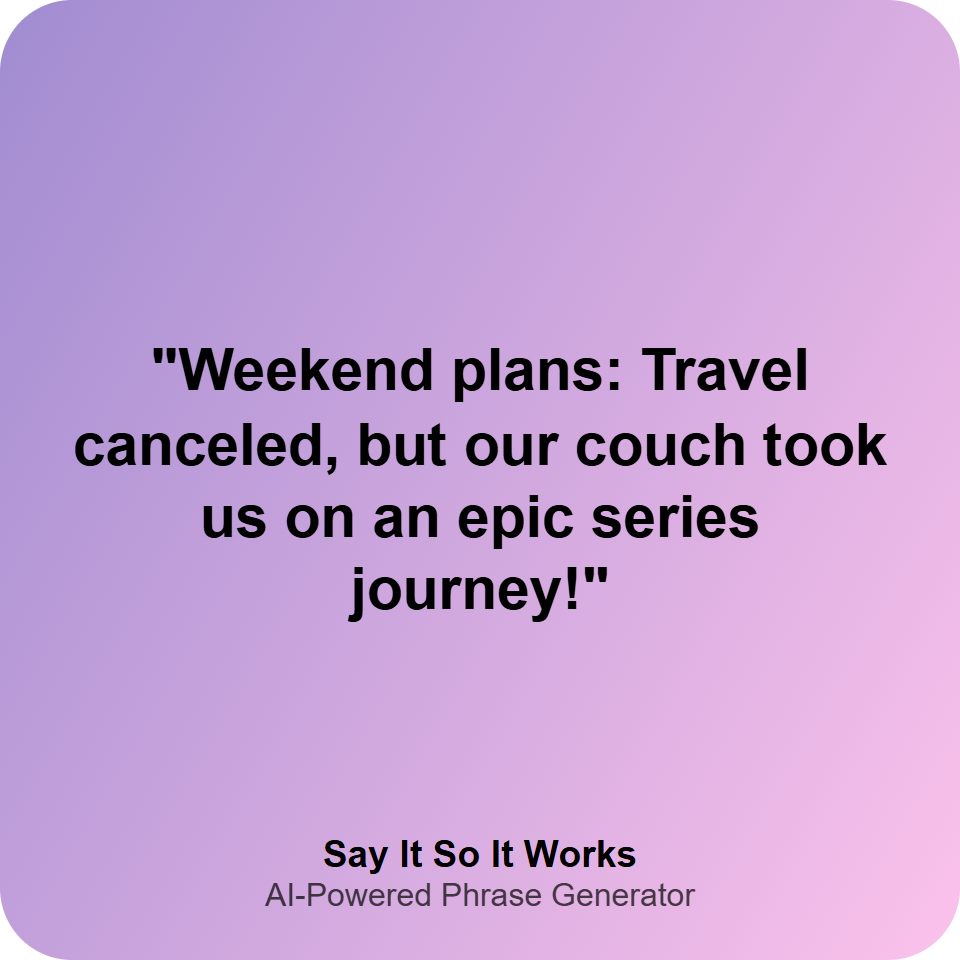 "Weekend plans: Travel canceled, but our couch took us on an epic series journey!"