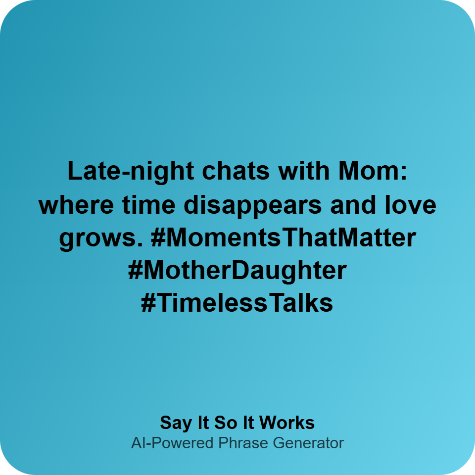Late-night chats with Mom: where time disappears and love grows. #MomentsThatMatter #MotherDaughter #TimelessTalks