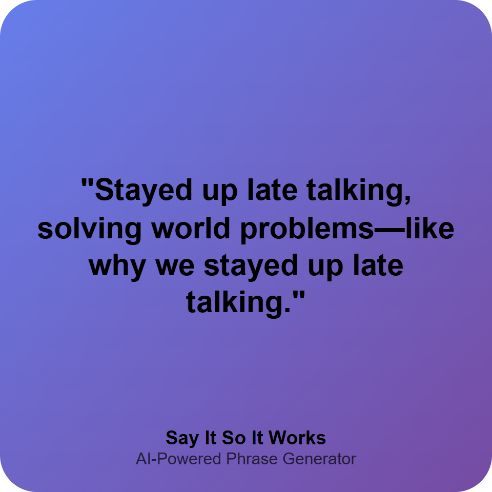 "Stayed up late talking, solving world problems—like why we stayed up late talking."