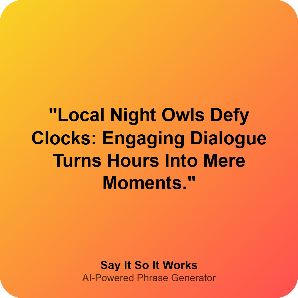 "Local Night Owls Defy Clocks: Engaging Dialogue Turns Hours Into Mere Moments."