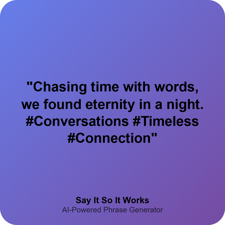 "Chasing time with words, we found eternity in a night. #Conversations #Timeless #Connection"