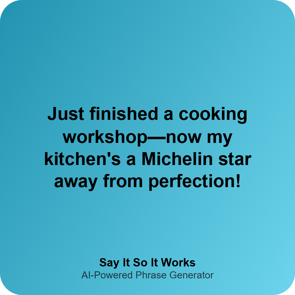 Just finished a cooking workshop—now my kitchen's a Michelin star away from perfection!
