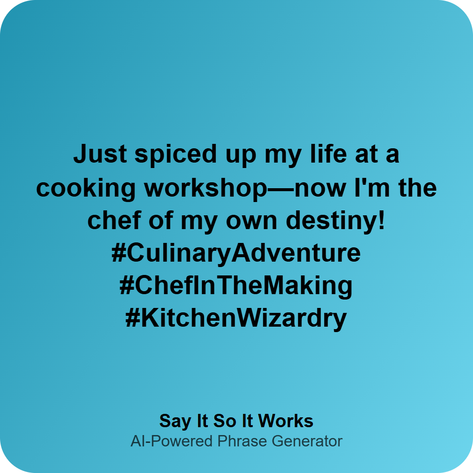 Just spiced up my life at a cooking workshop—now I'm the chef of my own destiny! #CulinaryAdventure #ChefInTheMaking #KitchenWizardry