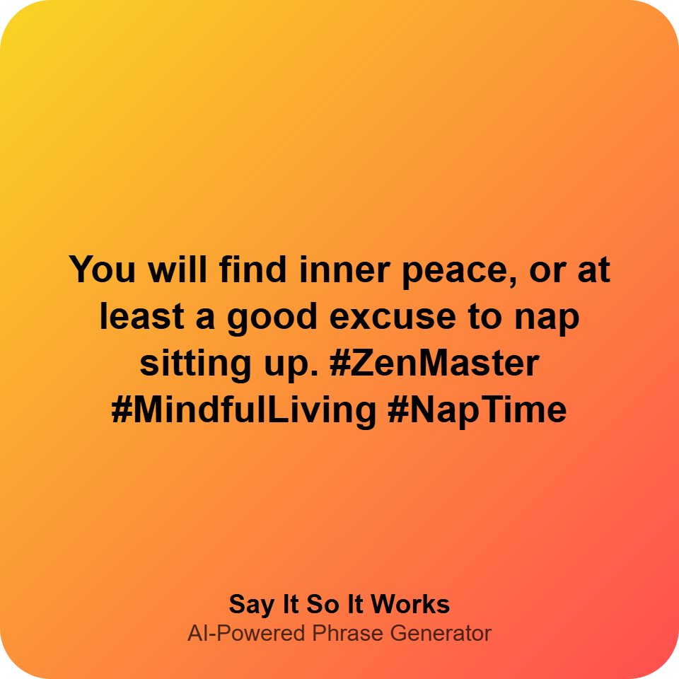 You will find inner peace, or at least a good excuse to nap sitting up. #ZenMaster #MindfulLiving #NapTime