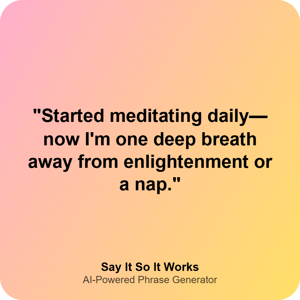 "Started meditating daily—now I'm one deep breath away from enlightenment or a nap."
