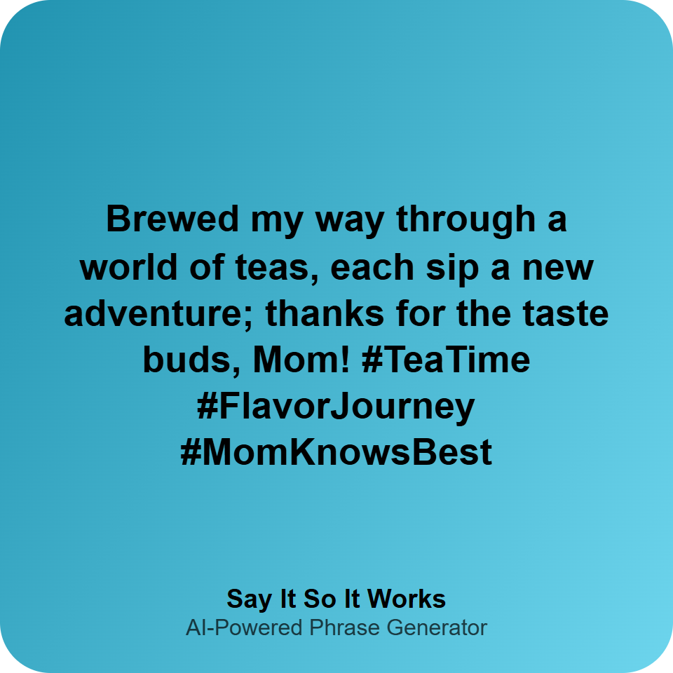 Brewed my way through a world of teas, each sip a new adventure; thanks for the taste buds, Mom! #TeaTime #FlavorJourney #MomKnowsBest