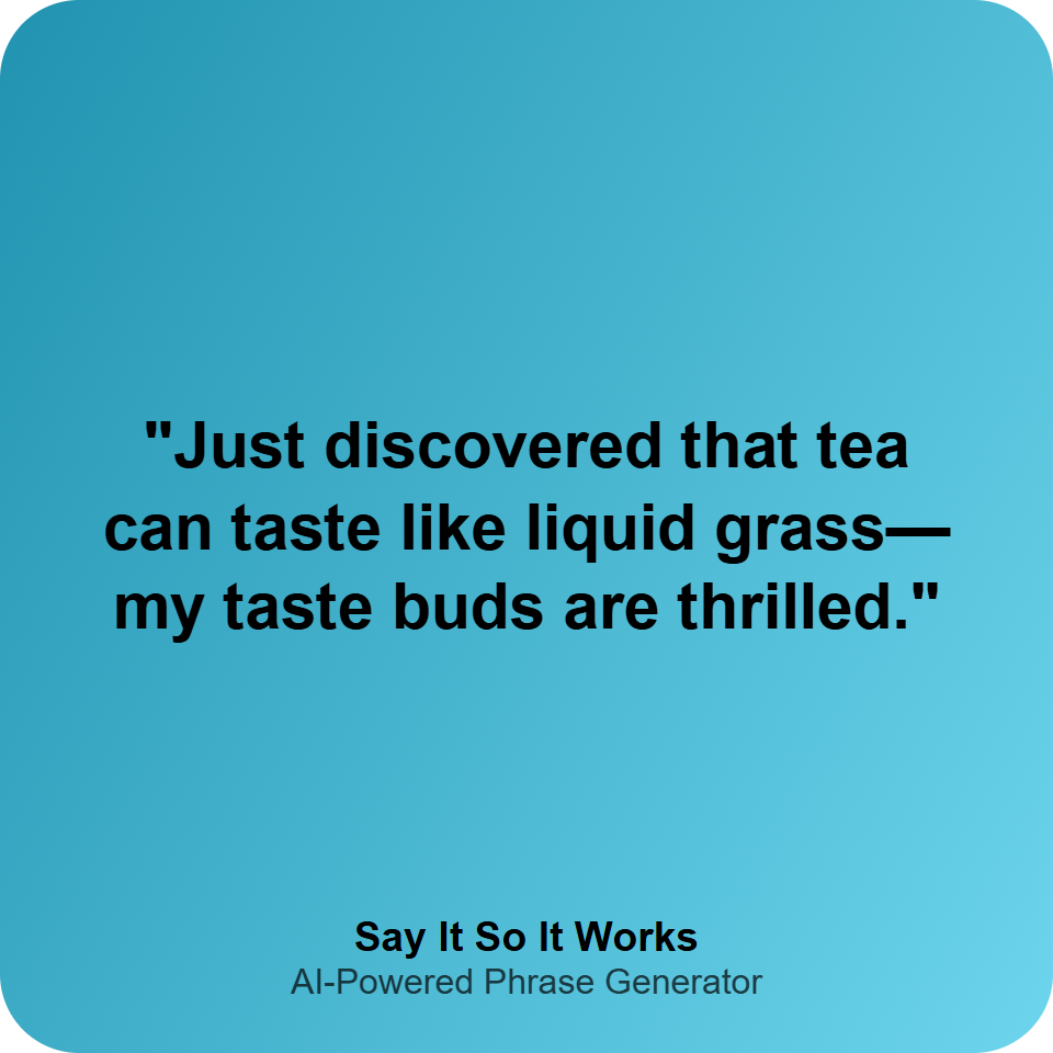 "Just discovered that tea can taste like liquid grass—my taste buds are thrilled."