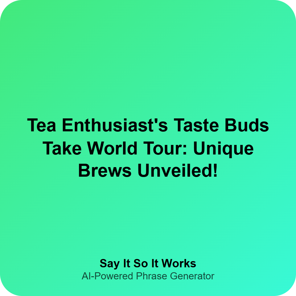 Tea Enthusiast's Taste Buds Take World Tour: Unique Brews Unveiled!