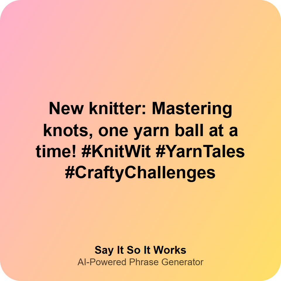 New knitter: Mastering knots, one yarn ball at a time! #KnitWit #YarnTales #CraftyChallenges