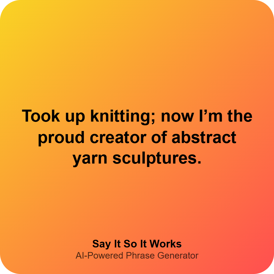 Took up knitting; now I’m the proud creator of abstract yarn sculptures.