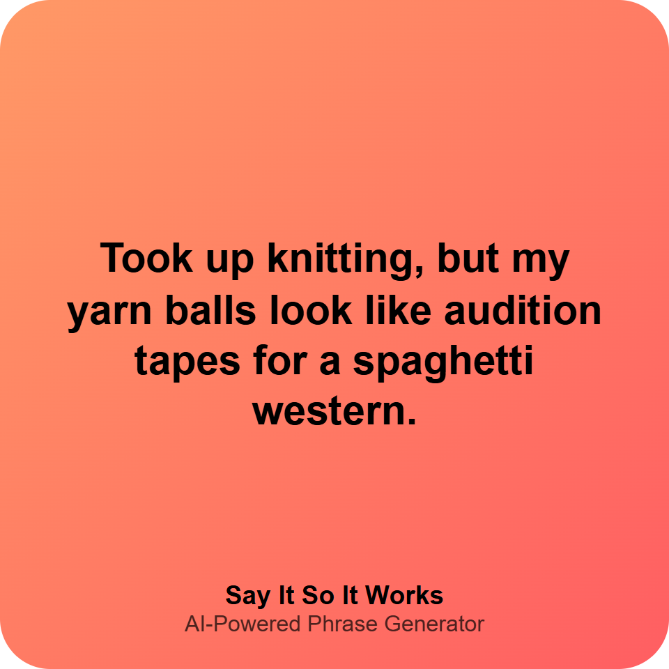 Took up knitting, but my yarn balls look like audition tapes for a spaghetti western.