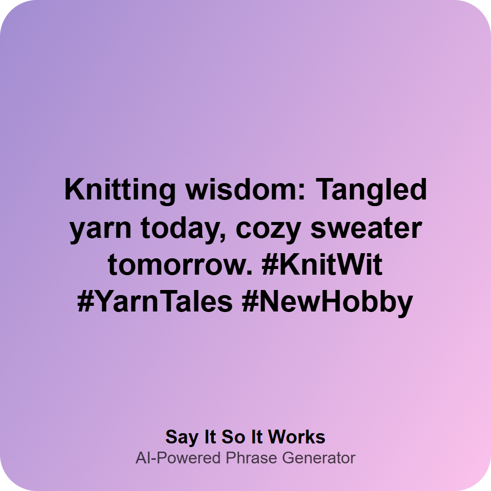 Knitting wisdom: Tangled yarn today, cozy sweater tomorrow. #KnitWit #YarnTales #NewHobby