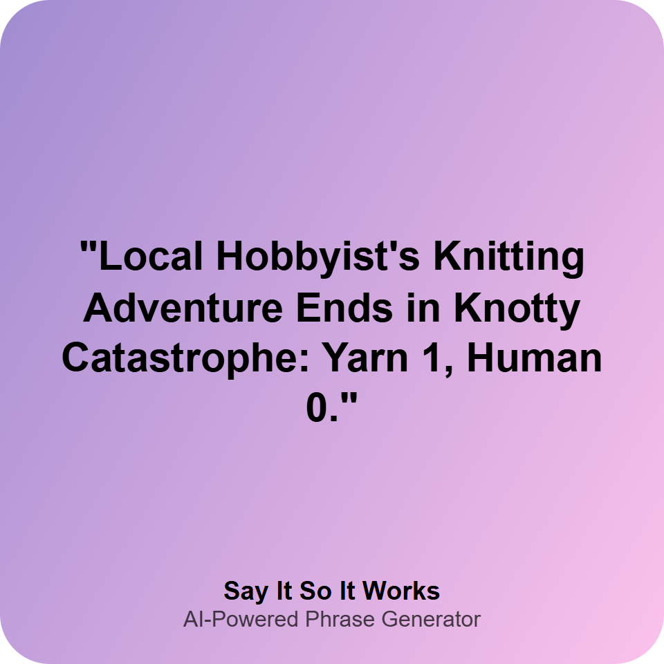 "Local Hobbyist's Knitting Adventure Ends in Knotty Catastrophe: Yarn 1, Human 0."