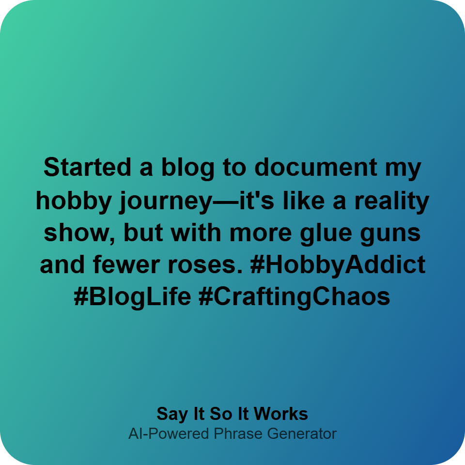 Started a blog to document my hobby journey—it's like a reality show, but with more glue guns and fewer roses. #HobbyAddict #BlogLife #CraftingChaos