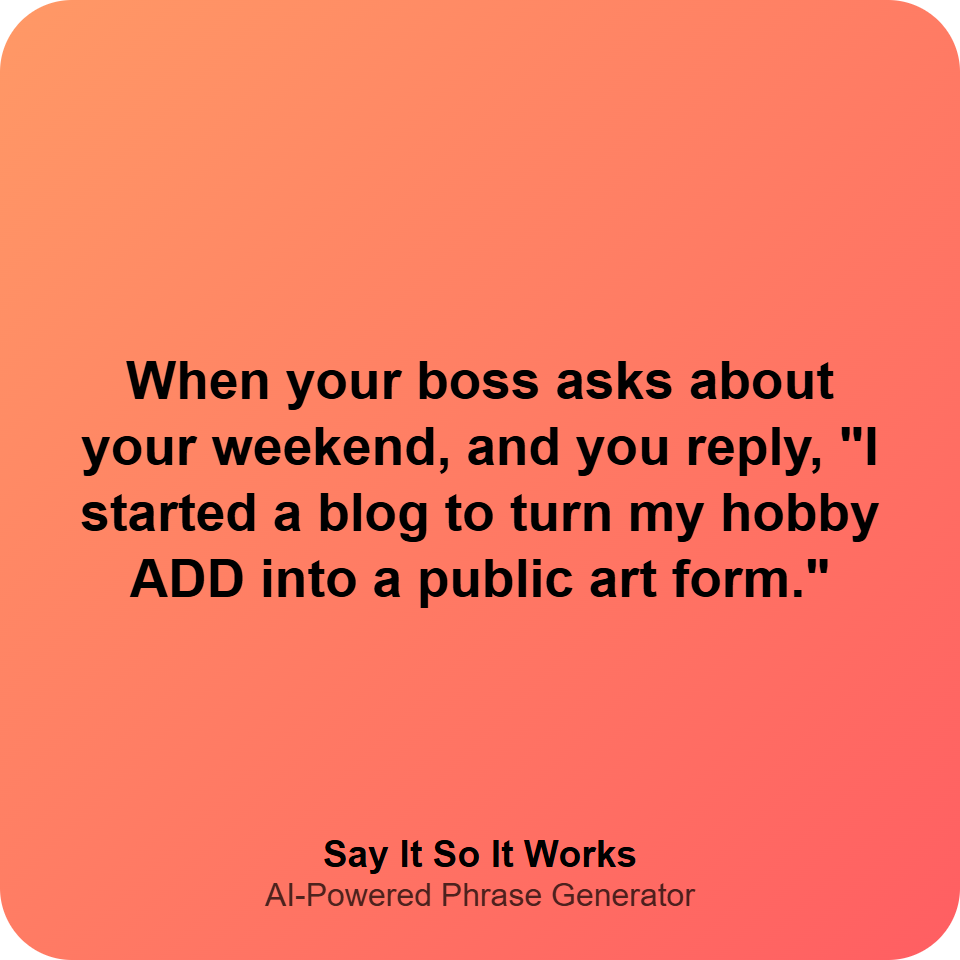When your boss asks about your weekend, and you reply, "I started a blog to turn my hobby ADD into a public art form."
