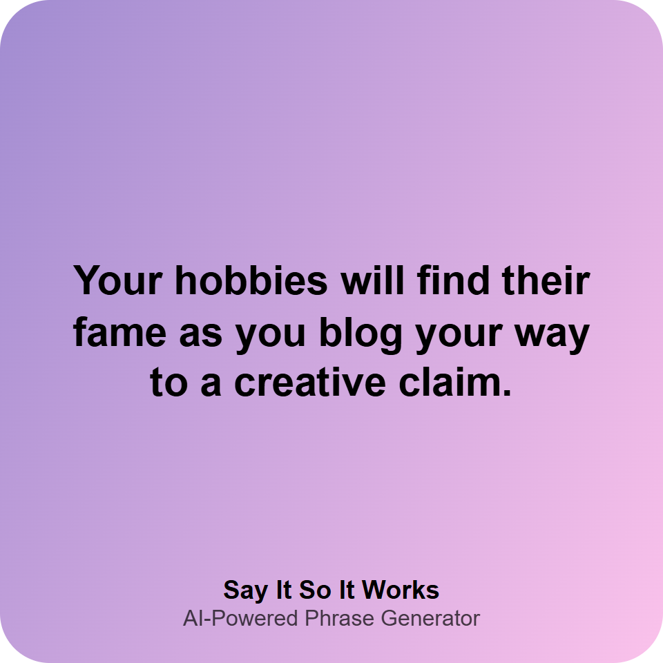 Your hobbies will find their fame as you blog your way to a creative claim.