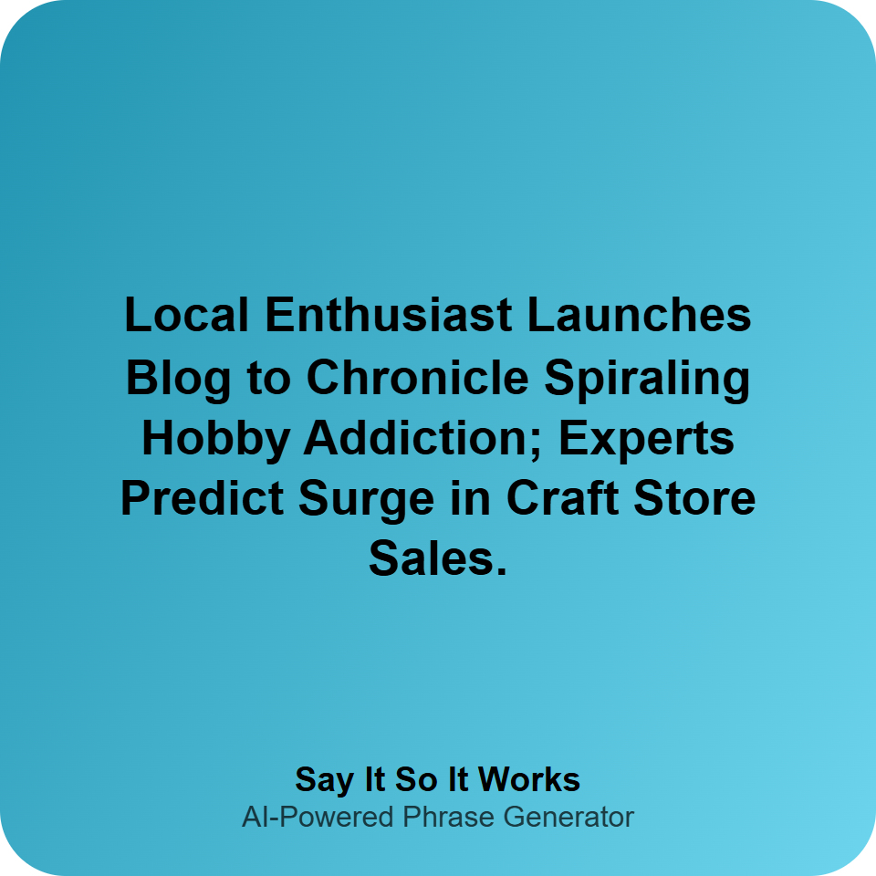 Local Enthusiast Launches Blog to Chronicle Spiraling Hobby Addiction; Experts Predict Surge in Craft Store Sales.