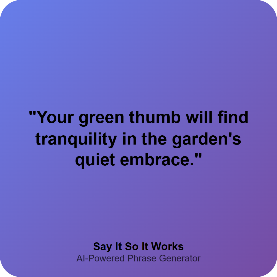"Your green thumb will find tranquility in the garden's quiet embrace."