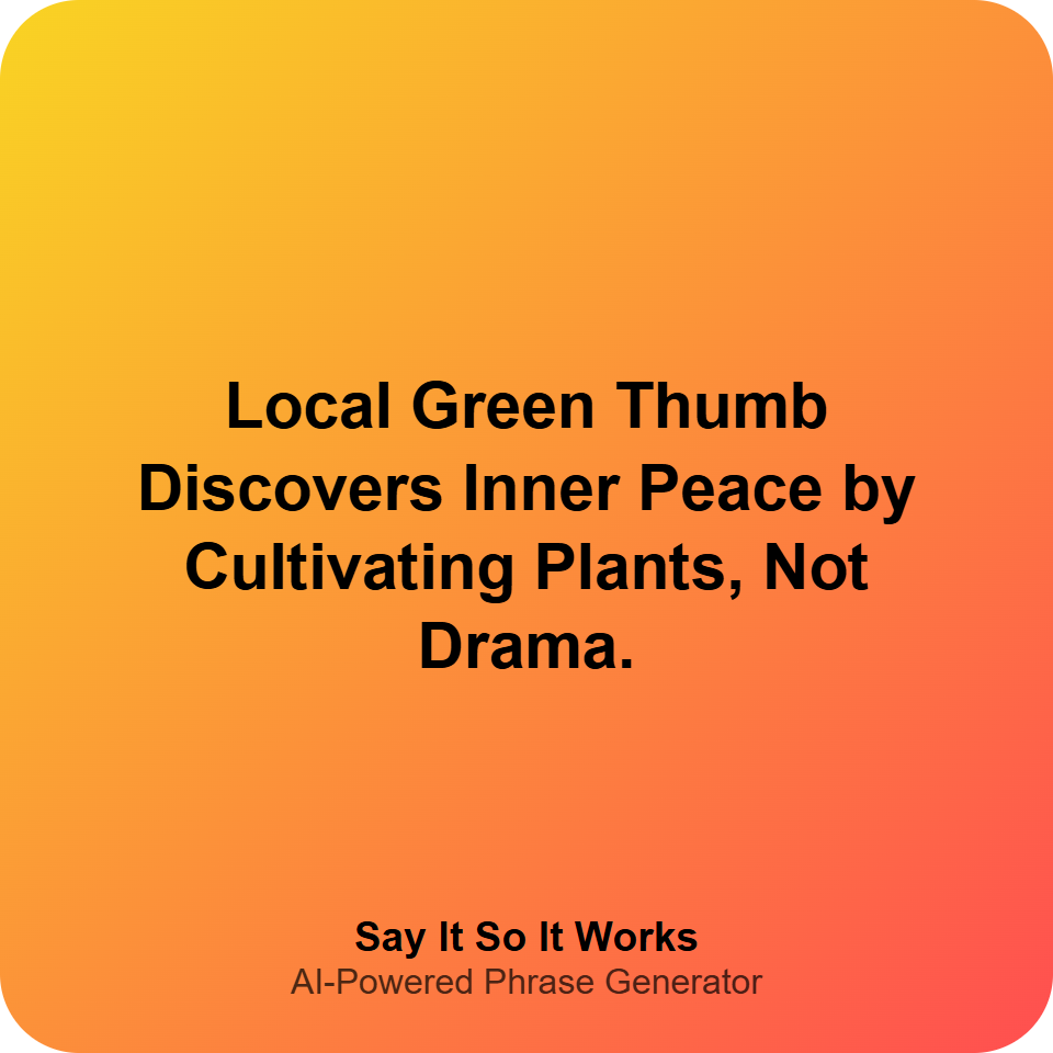 Local Green Thumb Discovers Inner Peace by Cultivating Plants, Not Drama.