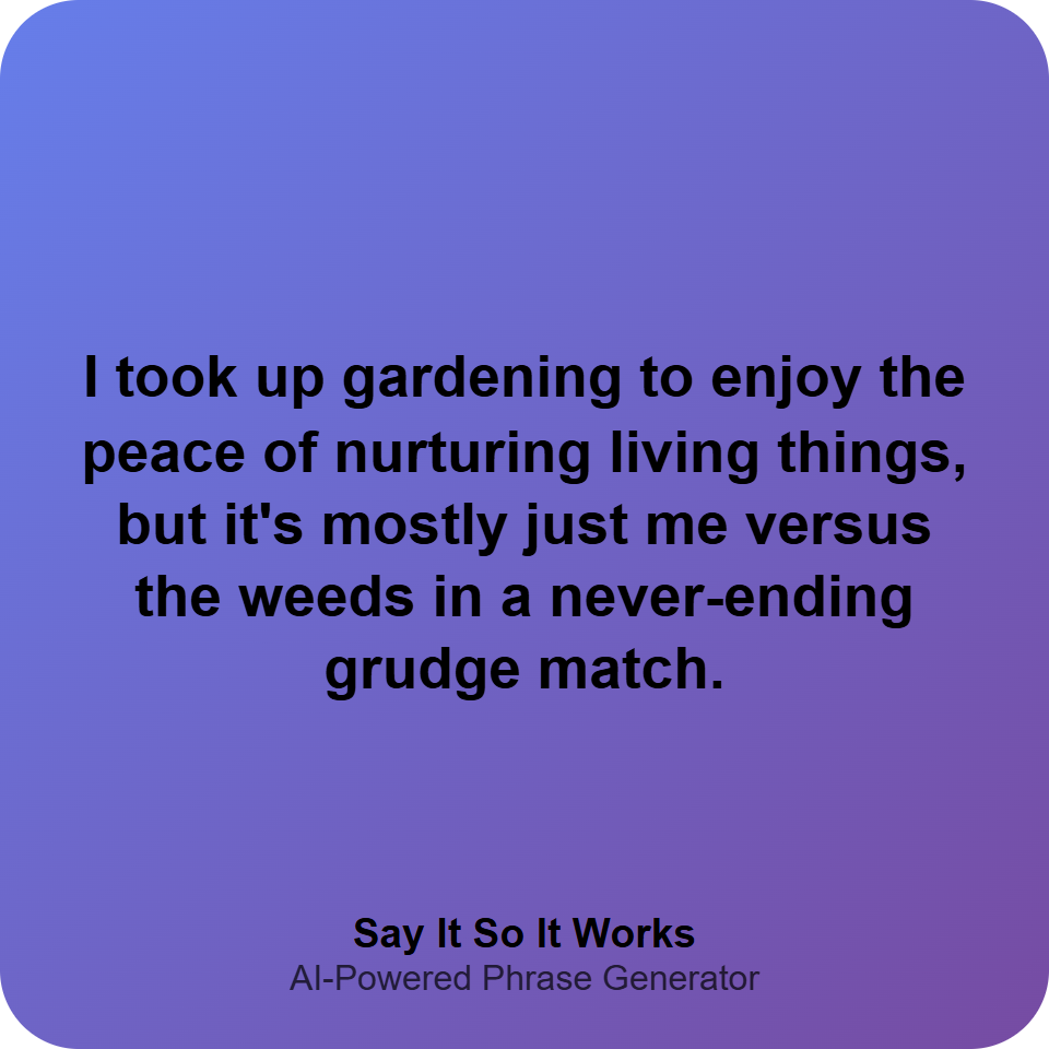 I took up gardening to enjoy the peace of nurturing living things, but it's mostly just me versus the weeds in a never-ending grudge match.
