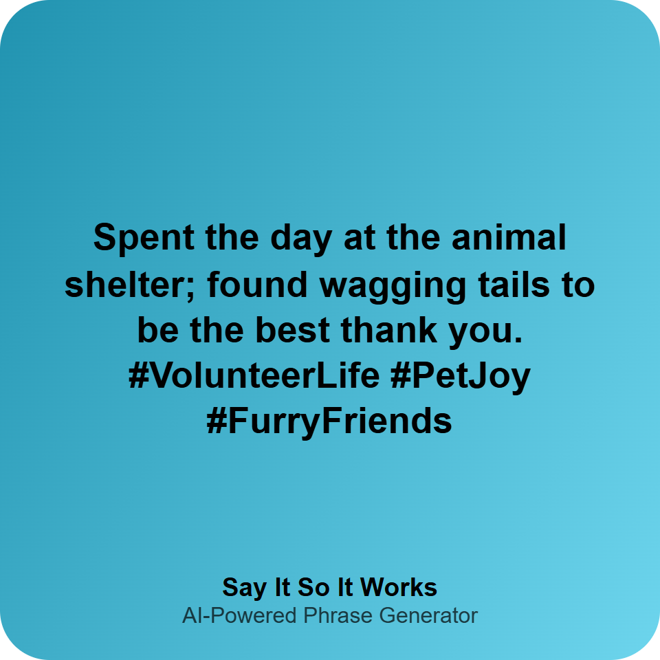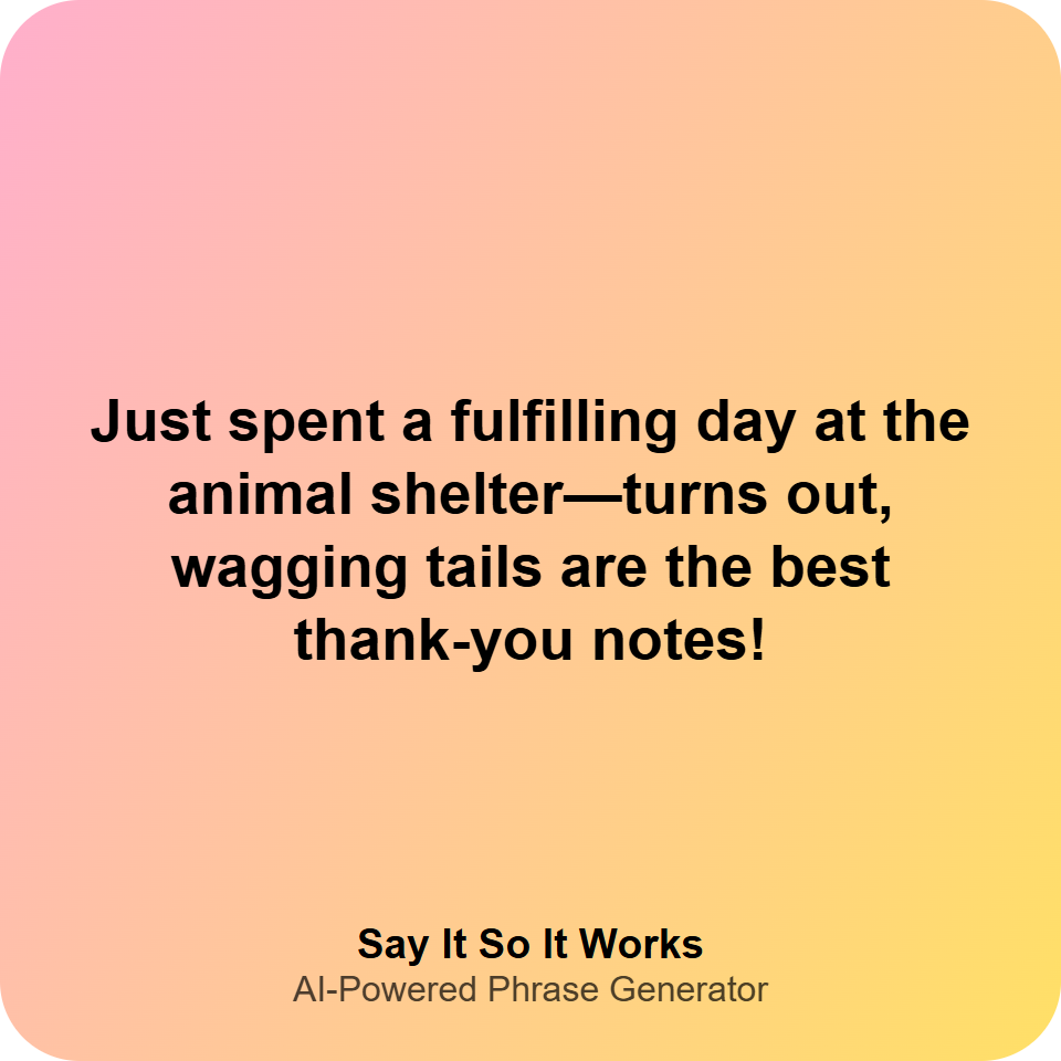 Just spent a fulfilling day at the animal shelter—turns out, wagging tails are the best thank-you notes!