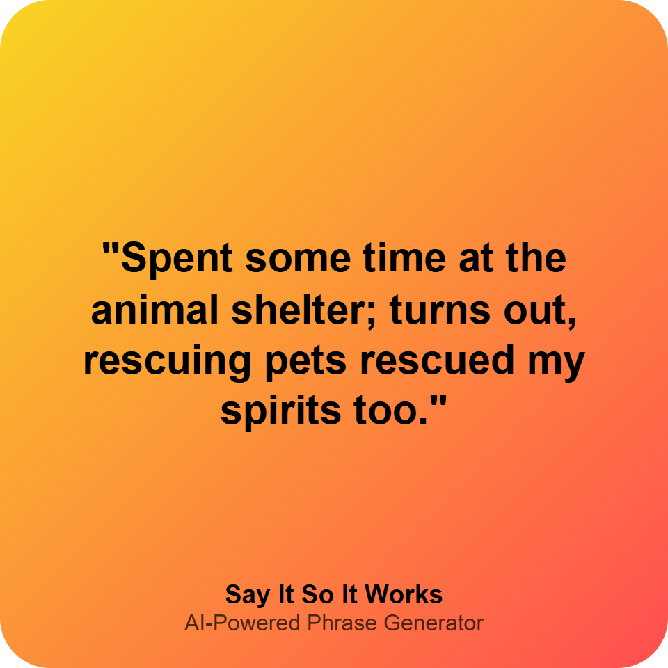 "Spent some time at the animal shelter; turns out, rescuing pets rescued my spirits too."