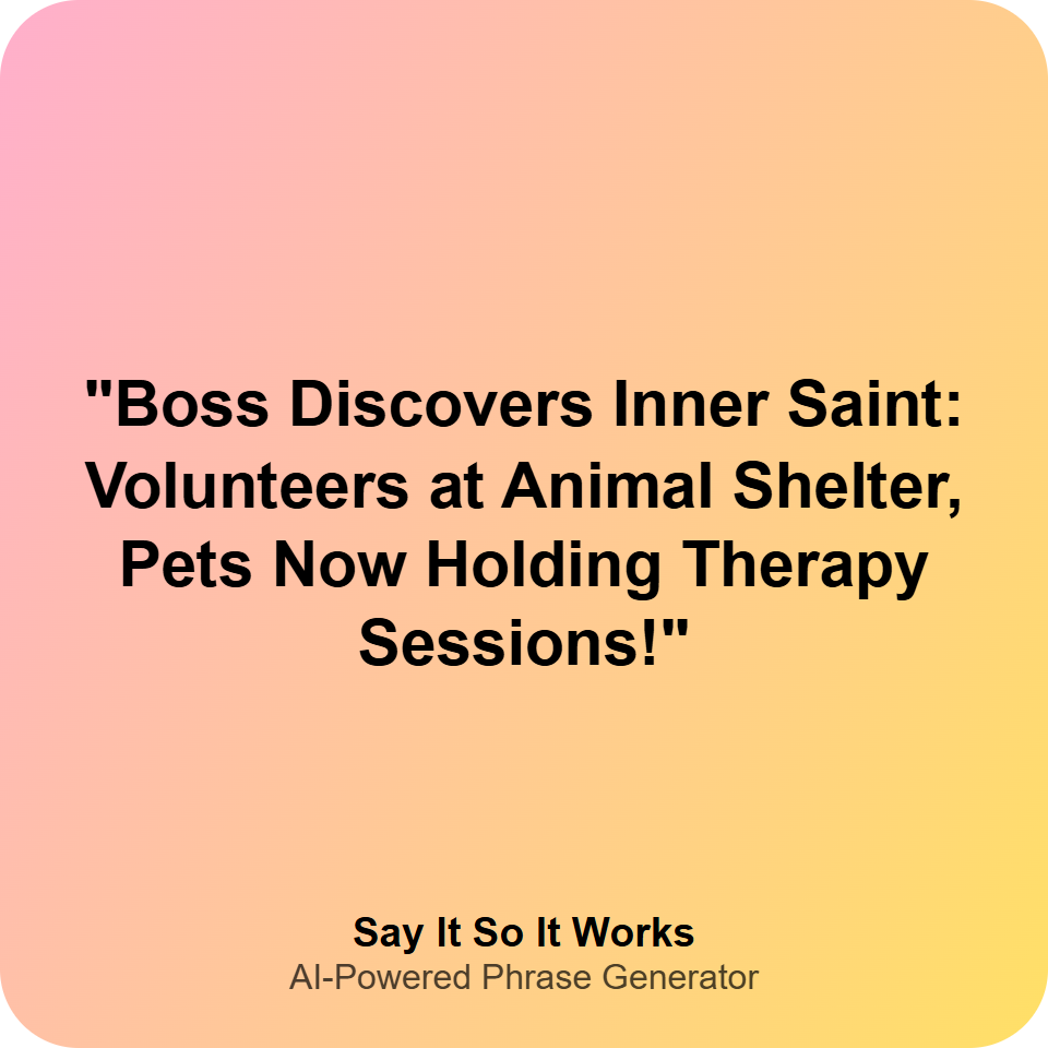 "Boss Discovers Inner Saint: Volunteers at Animal Shelter, Pets Now Holding Therapy Sessions!"