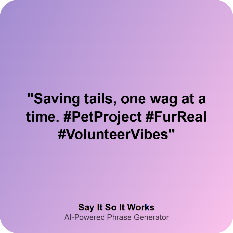 "Saving tails, one wag at a time. #PetProject #FurReal #VolunteerVibes"