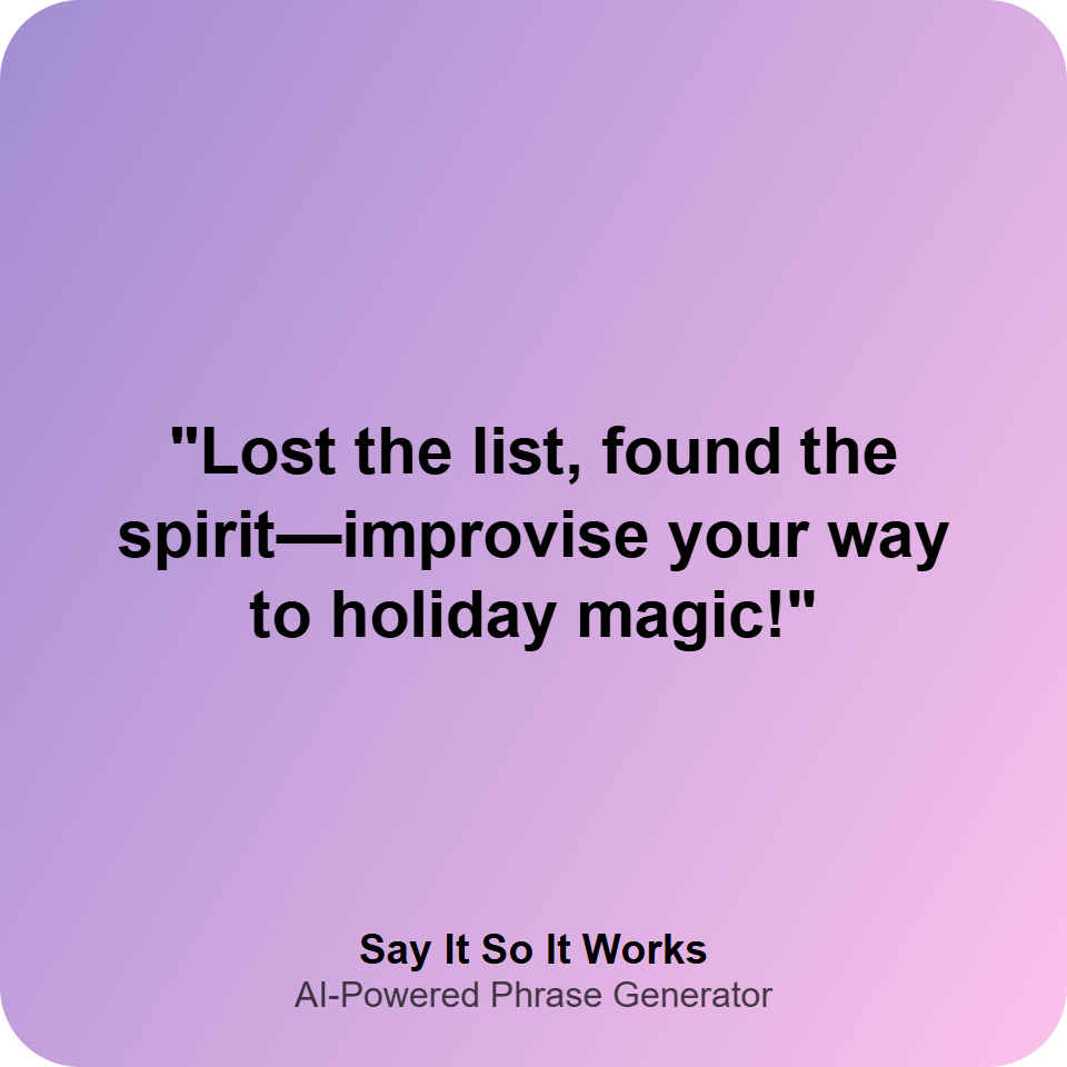 "Lost the list, found the spirit—improvise your way to holiday magic!"