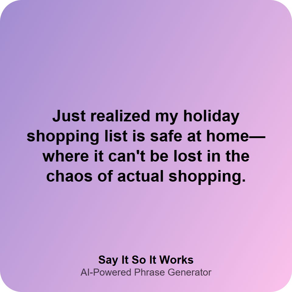 Just realized my holiday shopping list is safe at home—where it can't be lost in the chaos of actual shopping.