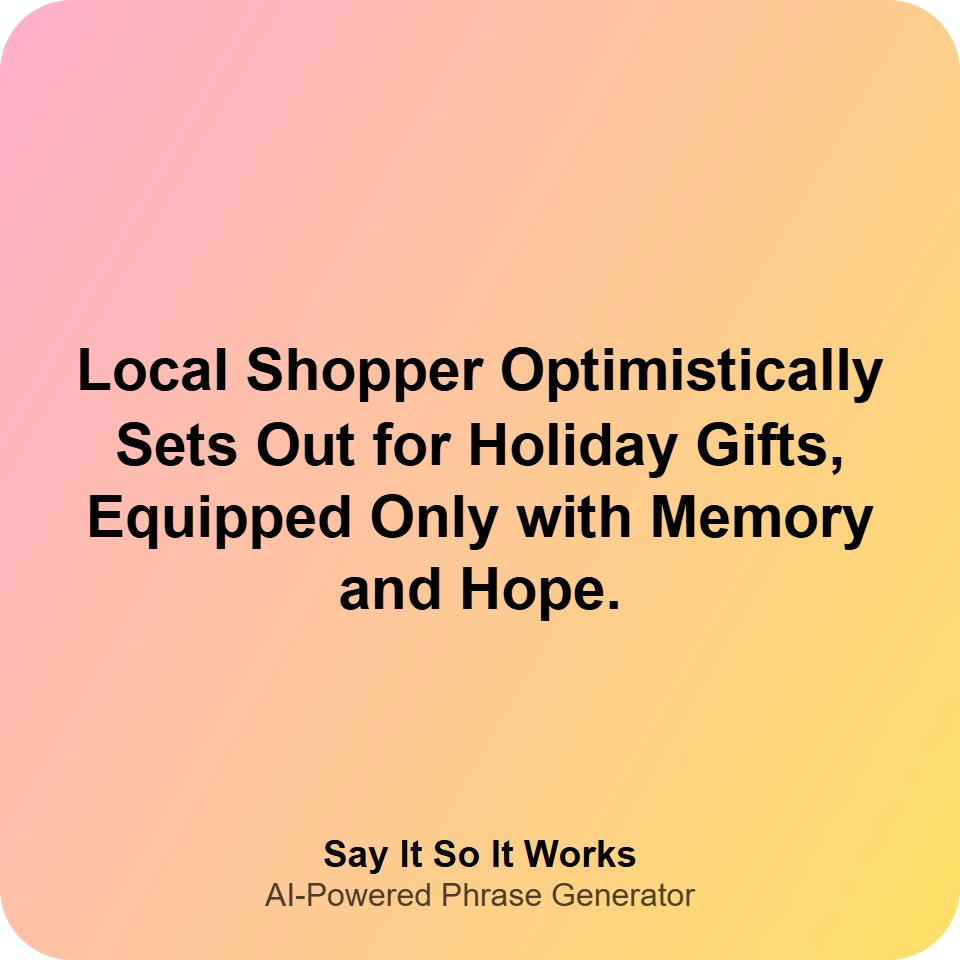 Local Shopper Optimistically Sets Out for Holiday Gifts, Equipped Only with Memory and Hope.