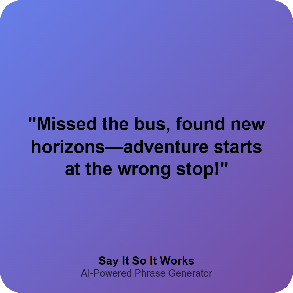 "Missed the bus, found new horizons—adventure starts at the wrong stop!"