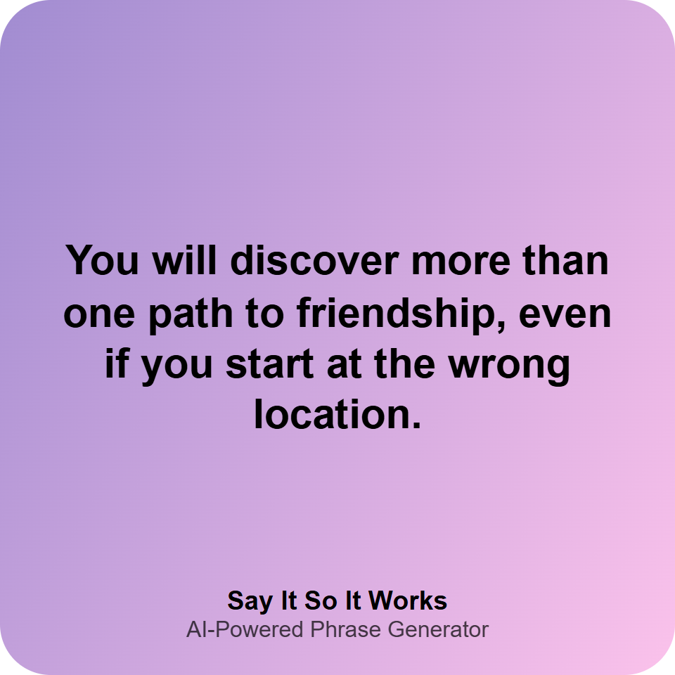 You will discover more than one path to friendship, even if you start at the wrong location.