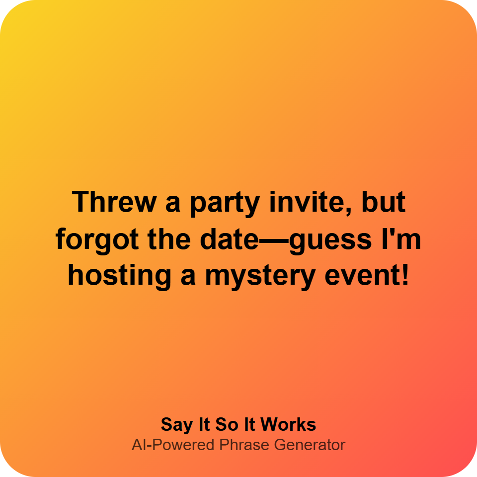 Threw a party invite, but forgot the date—guess I'm hosting a mystery event!