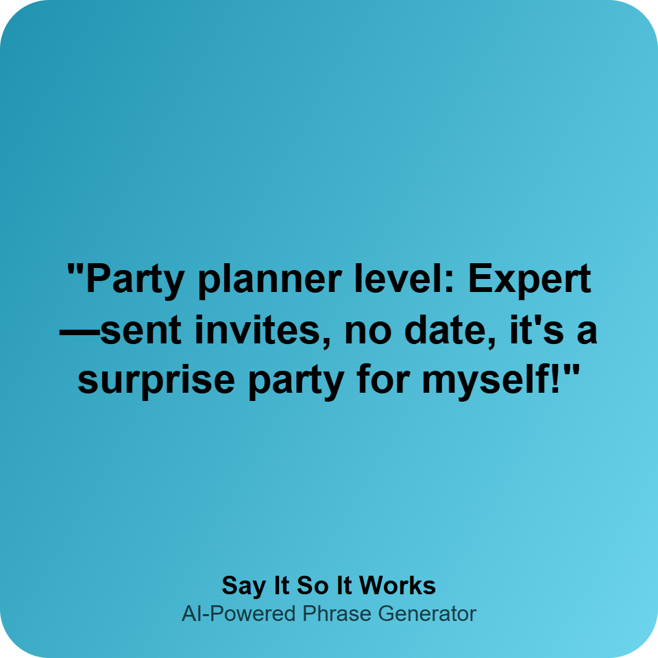 "Party planner level: Expert—sent invites, no date, it's a surprise party for myself!"