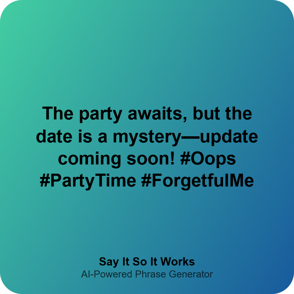 The party awaits, but the date is a mystery—update coming soon! #Oops #PartyTime #ForgetfulMe