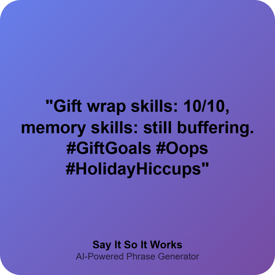 "Gift wrap skills: 10/10, memory skills: still buffering. #GiftGoals #Oops #HolidayHiccups"