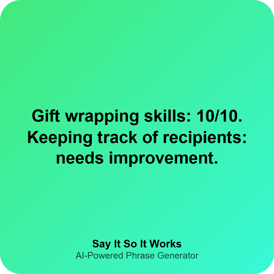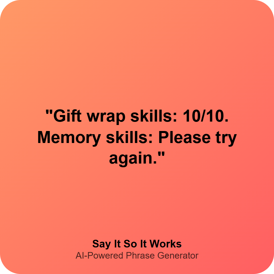 "Gift wrap skills: 10/10. Memory skills: Please try again."