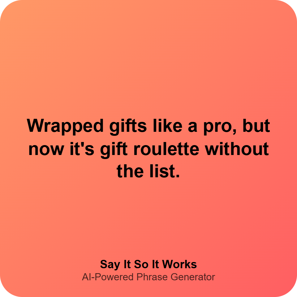 Wrapped gifts like a pro, but now it's gift roulette without the list.