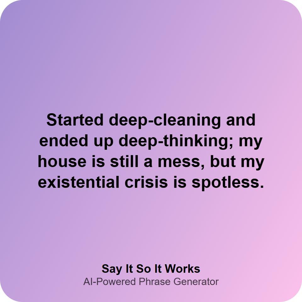Started deep-cleaning and ended up deep-thinking; my house is still a mess, but my existential crisis is spotless.